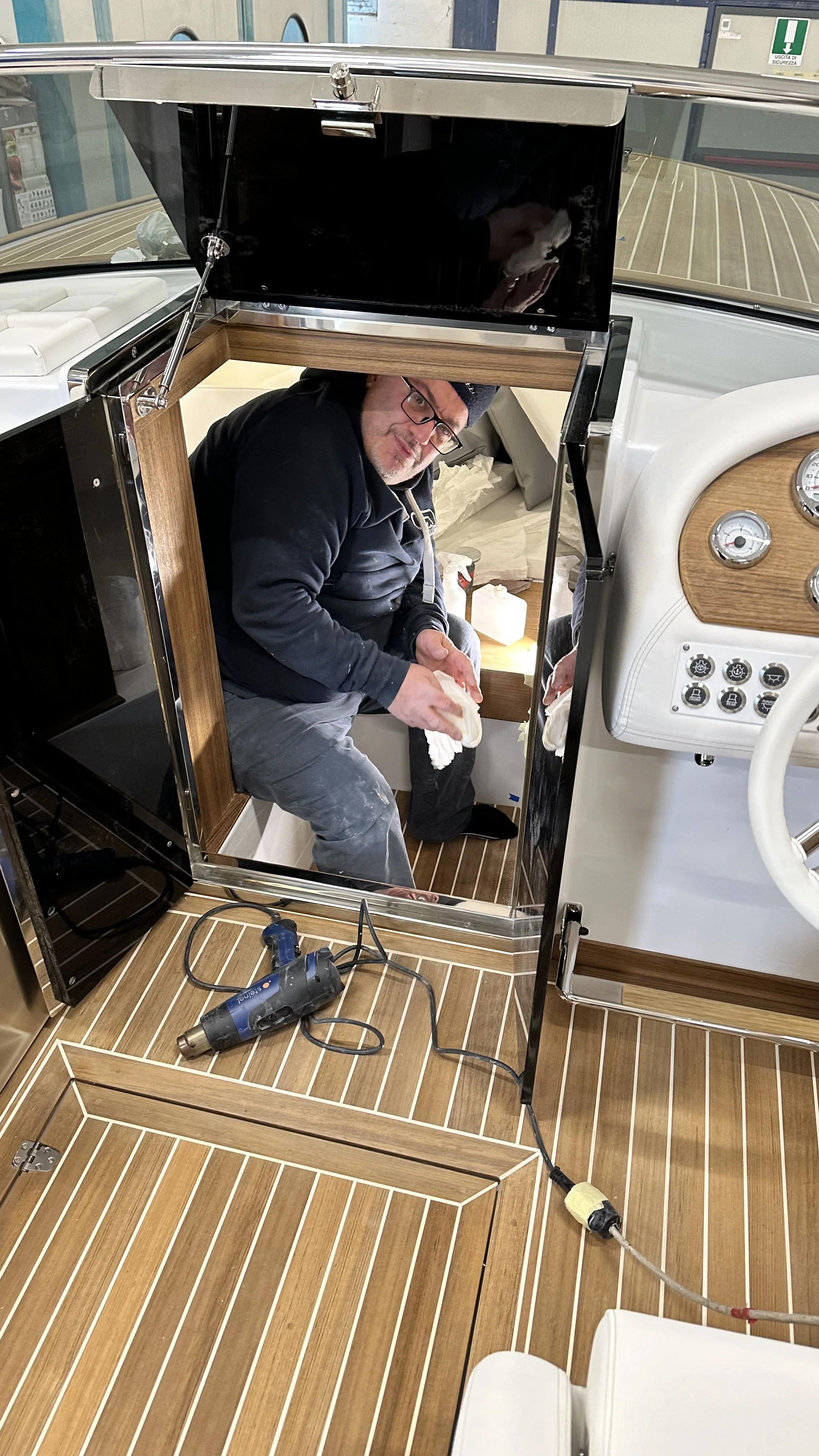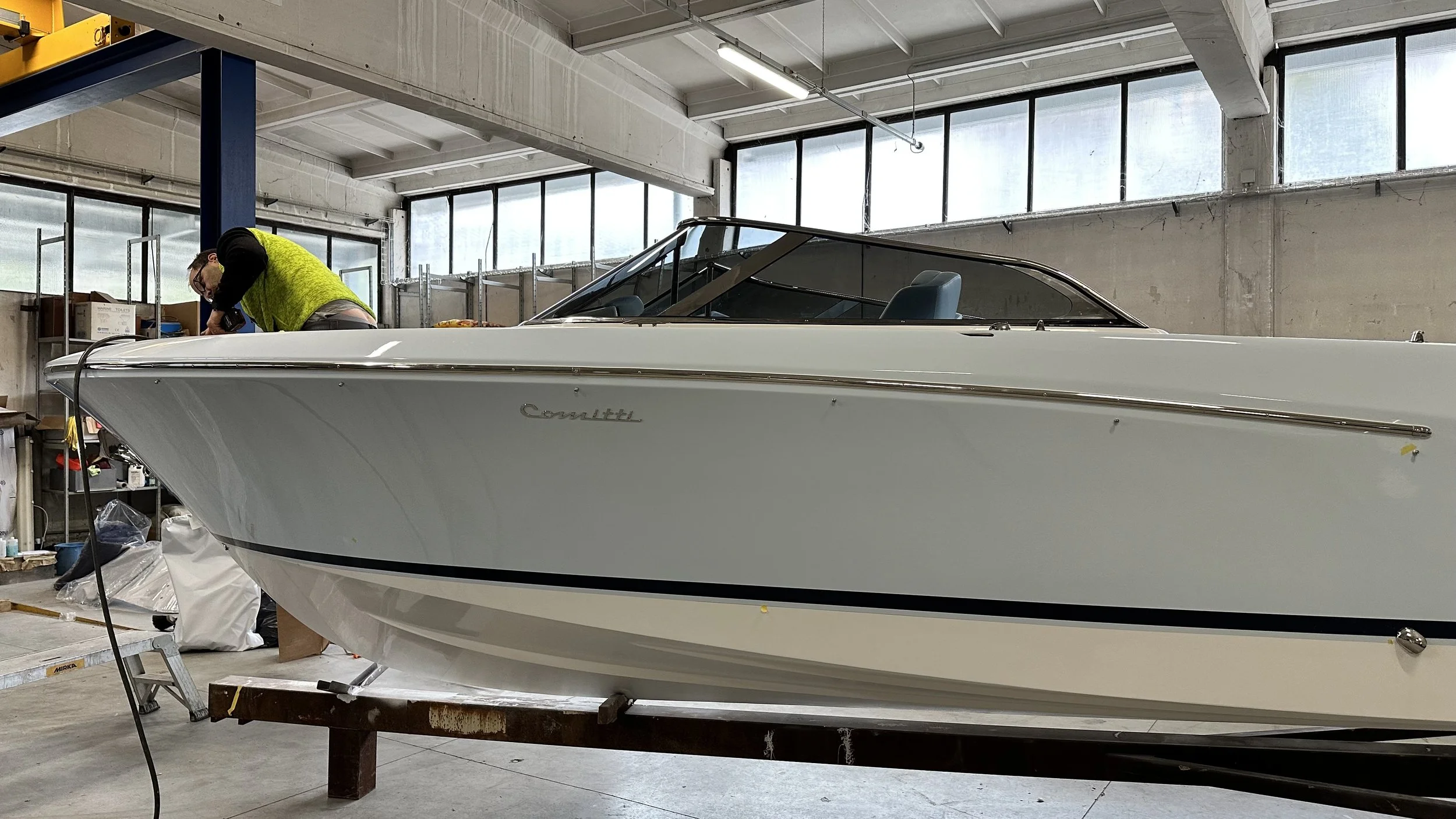 Inspecting boats at Comitti Headquarters in Como Italy for shipment to Comitti North America Headquarters in NY